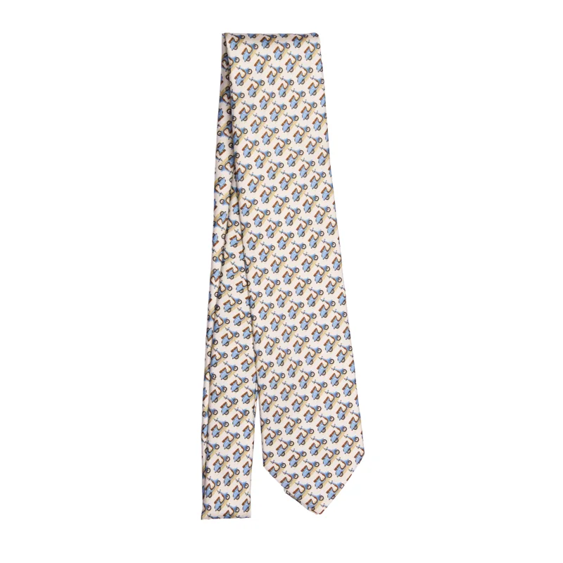 La nostra cravatta presenta un disegno di Vespe classiche, con dettagli intricati e colori brillanti che celebrano la storia e lo stile di questa icona del design.